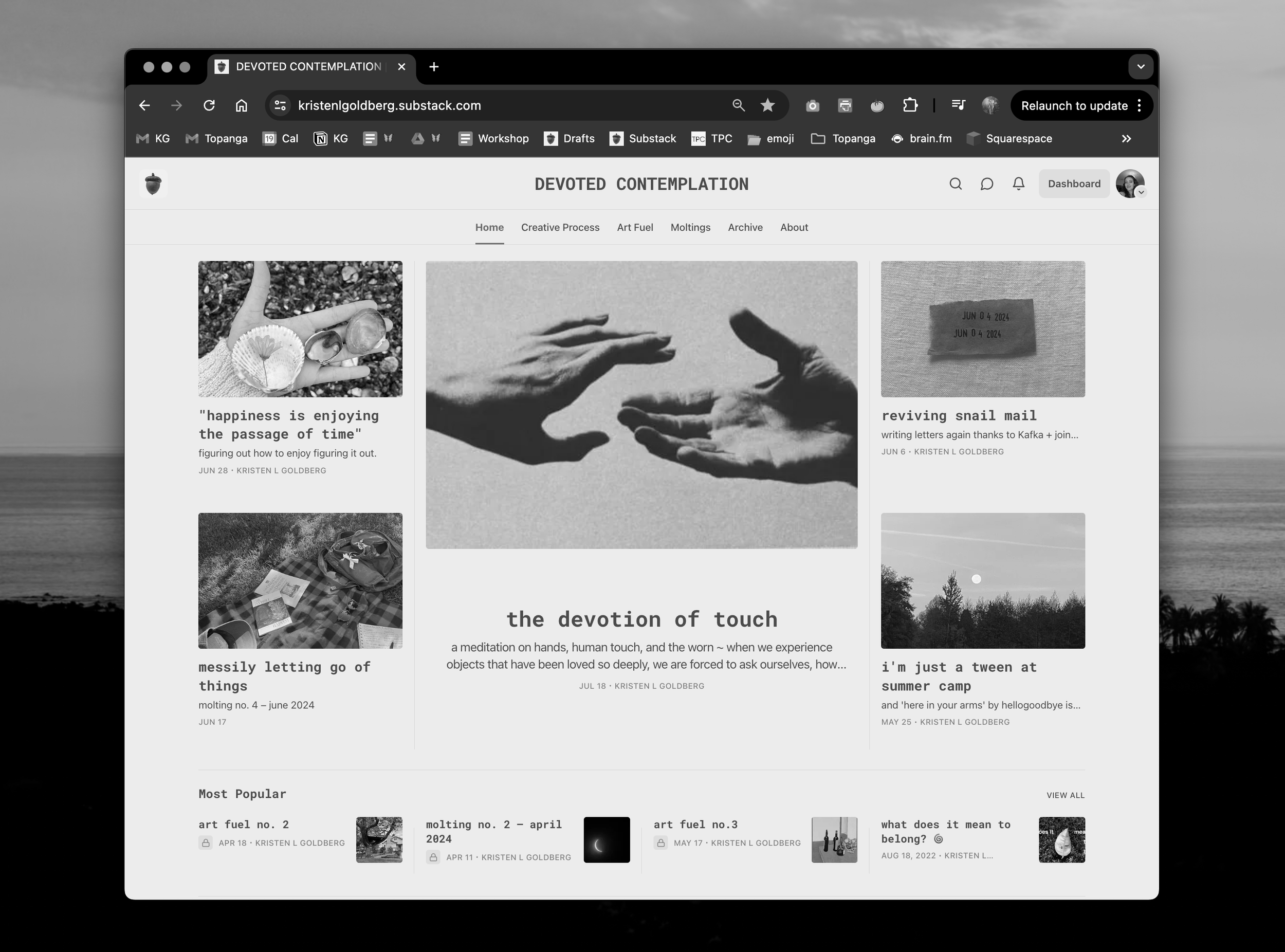 A monthly newspaper for inspiration, relaxation, and action. In a digital world where everything is constantly grabbing for your attention, The Retreat invites you to take your blue light glasses off and slow down.